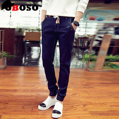 天貓購物商城OBO秋季男裝牛仔褲2015韓版新款青年顯瘦休閑褲抽繩小腳束腿長褲 - 522629720428