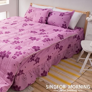 【幸福晨光】《新姿綻舞-粉紫》雙人五件式鋪棉兩用被床罩組