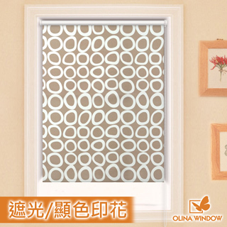 【歐麗娜窗飾】童趣圓印遮光捲簾 黃咖色(120cmX160cm)