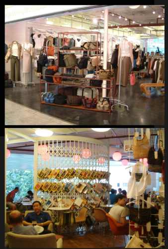 這是一家兩個新加坡設計師合開的,設計服飾與流行飾品 。他家的設計很年輕,很隨性,分店也開了七八家了。他們家的包包,很厚實。材料方面,他們常用厚實的棉料與皮料做handle。