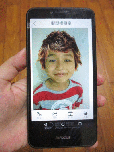 動刀,就可以模擬出多種髮型,實在是好有趣,看著Julin遊玩,一旁的