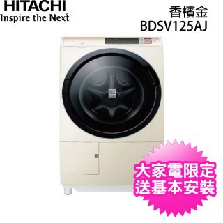 【限時活動優惠】【HITACHI 日立】12.5KG日本原裝擺動式飛瀑左開洗脫烘滾筒洗衣機(BDSV125AJ)-刷卡限時回饋