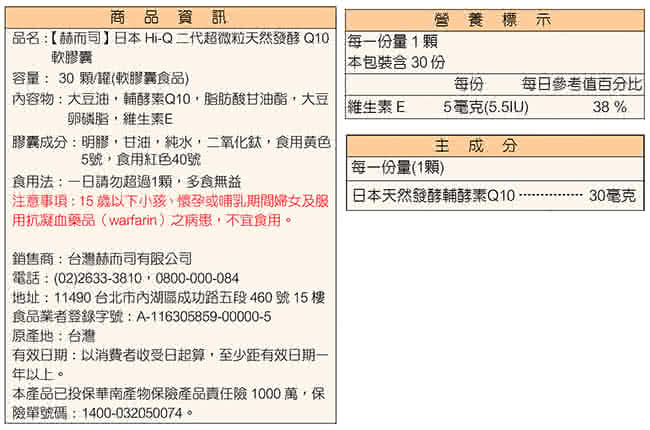 【赫而司】日本Hi-Q二代超微粒天然發酵Q10軟膠囊(30顆-罐)事先搜尋了一下幾個論壇