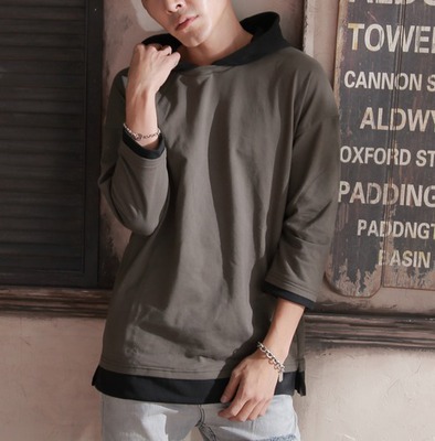 【生日禮物介紹】美式休閒假兩件配色帽T(軍綠) 202 下殺送禮