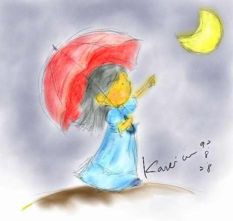 一般人想到撐傘晒月光,一定覺得這個人腦子壞了,又沒下雨,拿傘做什麼哩!? 太陽下站太久會晒傷,那月亮下站太久也會吧,有時做點異於常人的時,老實說還蠻過癮的耶,那天當你在我家附近看到我「撐傘,晒月...