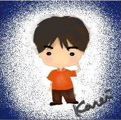 因為…那位23歲青年的要求,叫我畫一幅他的畫像(可是…一點都不像!哈!)所以…就畫了這幅,他還幫他取了名-----躲在藍的憂鬱,不過有些瓢竊我的標題喔!給錢!阿國!