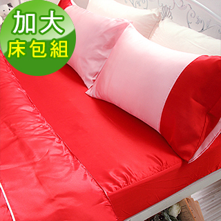 momo網母親節好禮 涼爽床墊 【璀璨寶石紅】加大三件式糖瓷絲緞床包+枕套組 汽/機車