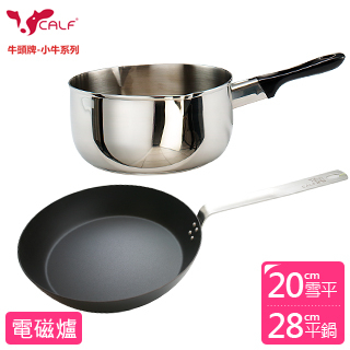 【牛頭牌】小牛雙鍋組(小牛黑金鋼淺平鍋28cm+小牛雪平鍋20cm)
