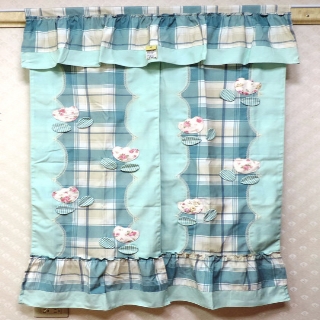 【櫻之舞】臺灣製造-鄉村拼布美麗大粉格門簾系列(鬱金香-綠90-150cm)