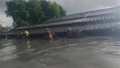 花蓮馬太鞍溪堰塞湖溢流造成下游地區重創,同島一命,屏東消防局派出特搜大隊等23人到當地協助搜救。救援畫面曝光,消防人員涉水挺進背出居民,也用橡皮艇協助脫困,當中一名小男童被嚇到,消防叔叔安撫說「不要怕...