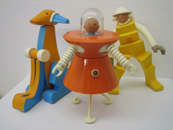 會接觸到何家超是他與搭檔所創作的 Figure — THE ROCKET CLUB 系列,這系列人物造型非常有特色,色彩鮮豔大膽,而且是高質素陶瓷材質的公仔,上色均勻又有重量,相當有趣。2004年於台北東區玩具店以1200元購入。何家超早期的陶瓷公仔已經停產,最近開始走金屬材質的創作,所以就等時間換取增值的空間了。