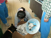 (上圖:老師將小白抱進箱子,準備抱到教室) ㄧ大早 就又看見陰魂不散的大白 以及小白正在和牠的阿娜答(校外小黃)交配中 之後小白吐了並一直發抖 決定將小白帶到教室去 因為孩子會看顧小白...