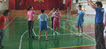 這是我們第二次的體育觀摩課程 與上一星期不同的是 阿蒼老師將暖身放在跑步之前 利用伸展肢體 來進行暖身活動 上圖及下圖為轉身擊掌 但是 我們的JACKSON怎麼樣也不轉身 都是正面擊掌...