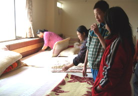 所以孩子例行性的將香客大樓的地板