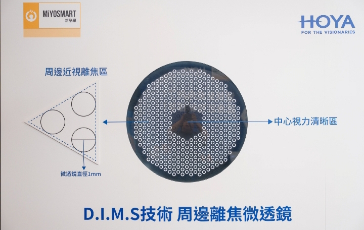 HOYA新樂學鏡片具有6年臨床實證3,更是全台首款通過TFDA第二等級醫療器材認證的產品,確立HOYA在台灣兒童近視管理上的重要地位。透過獨家的D.I.M.S.技術 (Defocus Incorporated Multiple Segments),HOYA新樂學鏡片中央提供清晰視力,同時透過周邊減緩眼軸增長,孩子白天正常配戴即可達到近視延緩效果。