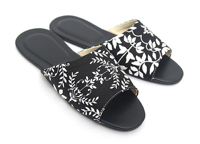 Zakka雜貨網: 夏日爭妍舒適皮拖-黑色花(28)