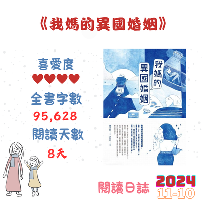 《我媽的異國婚姻》是台劇《媽,別鬧了》的原著,我沒有看過劇集,看完書再看預告,發現劇集只取小說背景再自由發...