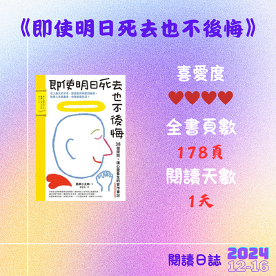 這是一本讓人反思人生的書,什麼最重要?什麼需要放棄?在人生最後一天,現在的煩惱...