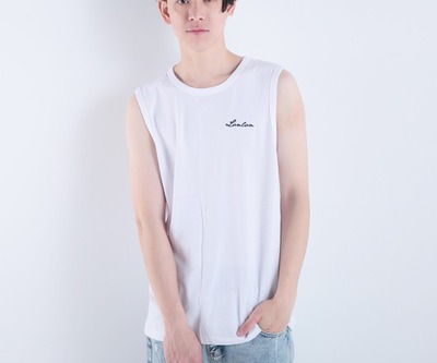 【滿額免運】潮流品牌草寫電繡背心(白色) 257 超人氣商品最近流行商品