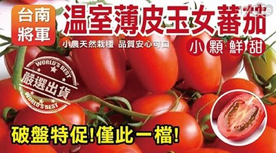 今天上網購買了台南將軍溫室薄皮玉女蕃茄,發現還蠻不錯的,CP值頗高向朋友推薦後,也蠻有興趣的,一直問我優惠專區必買台南將軍溫室薄皮玉女蕃茄在哪買的?有沒有比較便宜?想一想乾脆直接貼出來告訴大家好了!在...