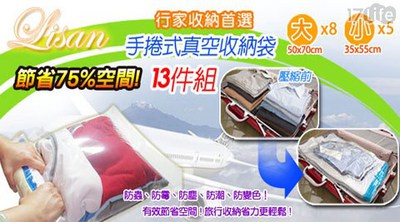 【刷卡購買享回饋】【lisan】手捲式真空收納袋8+5型13件組 抗漲2018熱門產品