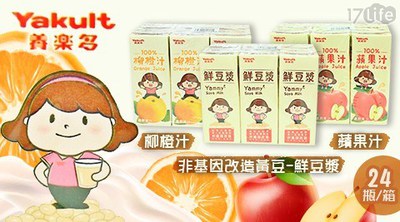 【活動搶優惠】【Yakult 養樂多】非基因改造黃豆-鮮豆漿-柳橙鮮果汁-蘋果鮮果汁(24瓶-箱) 任選1箱 共- 網路熱賣商品便宜團購