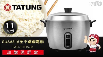 我相信,大家都知道買【TATUNG 大同】11人份SUS#316全不鏽鋼電鍋 TAC-11HN-M 加贈保鮮盒"要在網路上找便宜