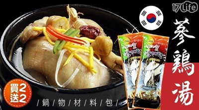 超殺優惠,報你知買二送二!冬令進補正當時,韓國進口人篸雞湯包,只需加入新鮮雞肉,就能輕鬆燉出營養又美味的人篸雞湯!