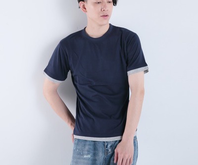 【本月限時刷卡折扣】懶人必備假兩件配色棉短T(藍色) 29100 限定商品網友一致推薦