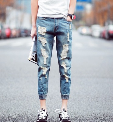 【網路購物】韓版破壞牛仔縮口九分褲 5592 2018流行商品最近流行商品
