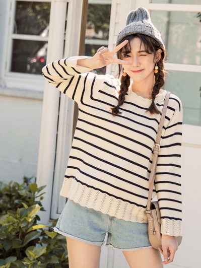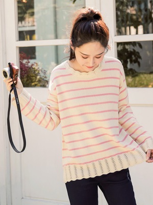 荷葉挑花設計條紋粗針織毛衣 介紹,大力推薦,最新出版,新上市,網路購物,網購達人,戰利品,商品,哪裡便宜,哪裡買,最便宜,必買,優惠網站,熱賣商品,經典商品,購買,購物,流行,不能不逛,非逛不可,網友開箱介紹
