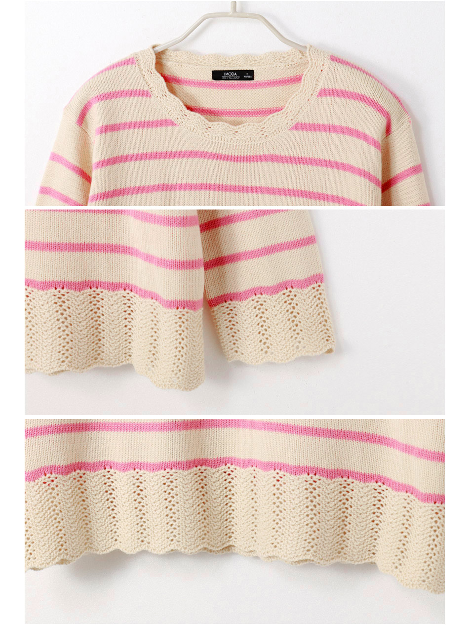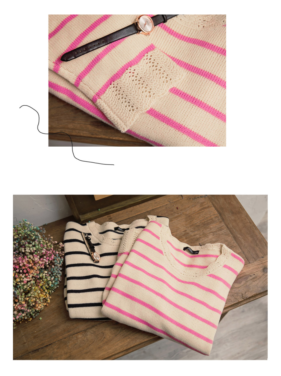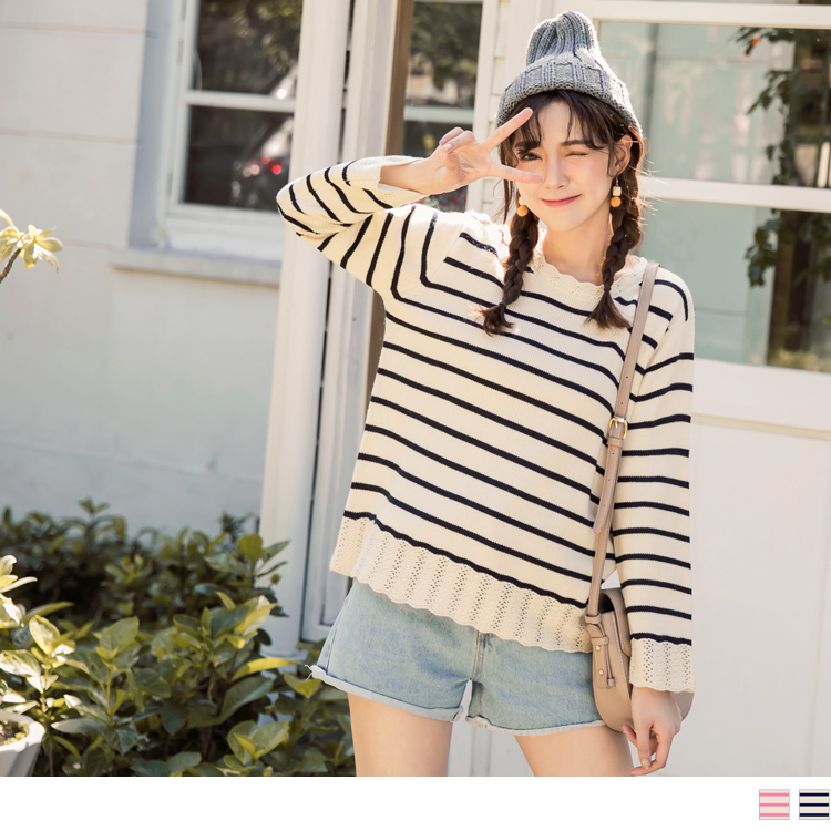 【限量商品】荷葉挑花設計條紋粗針織毛衣 下殺