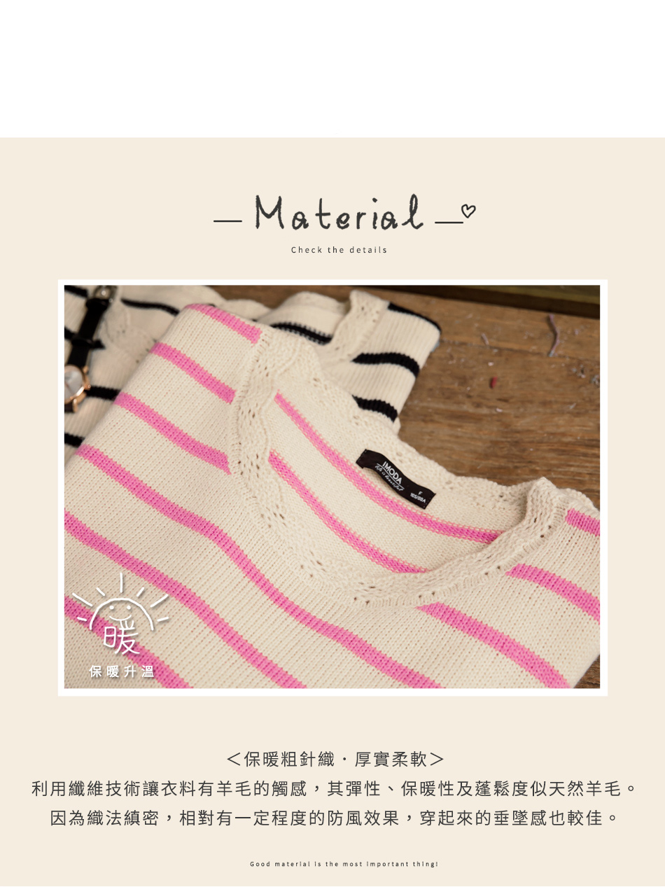 橫條紋使穿著休閒迷人,\\r\\n採用粗針織面料使肌膚舒適保暖~