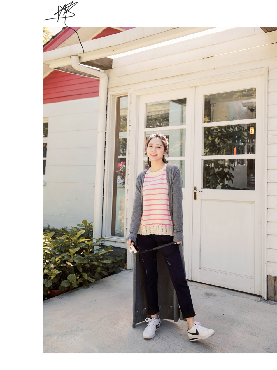 簡直可以說是賺到了,因為價格合理也不用為了購買荷葉挑花設計條紋粗針織毛衣
