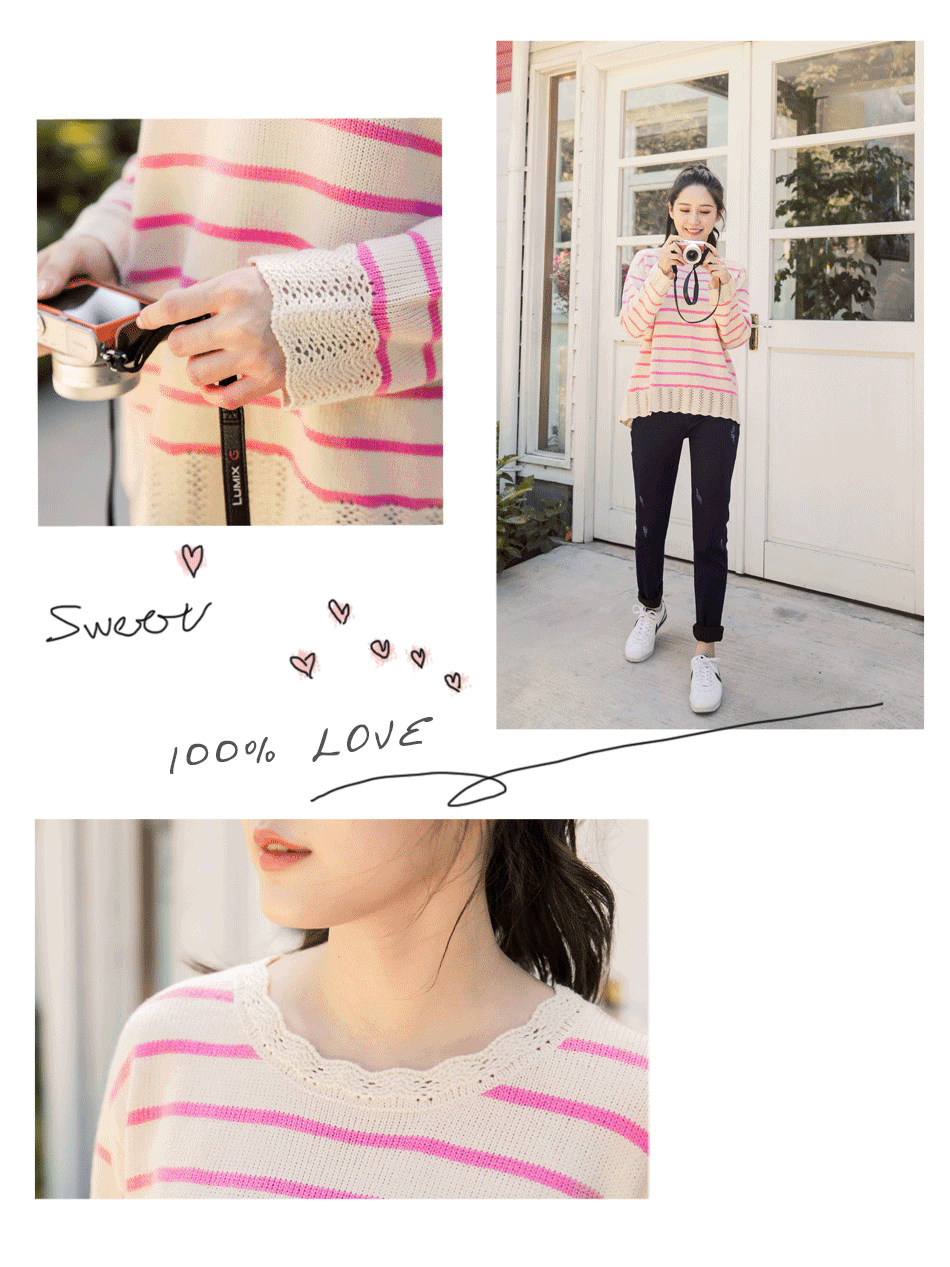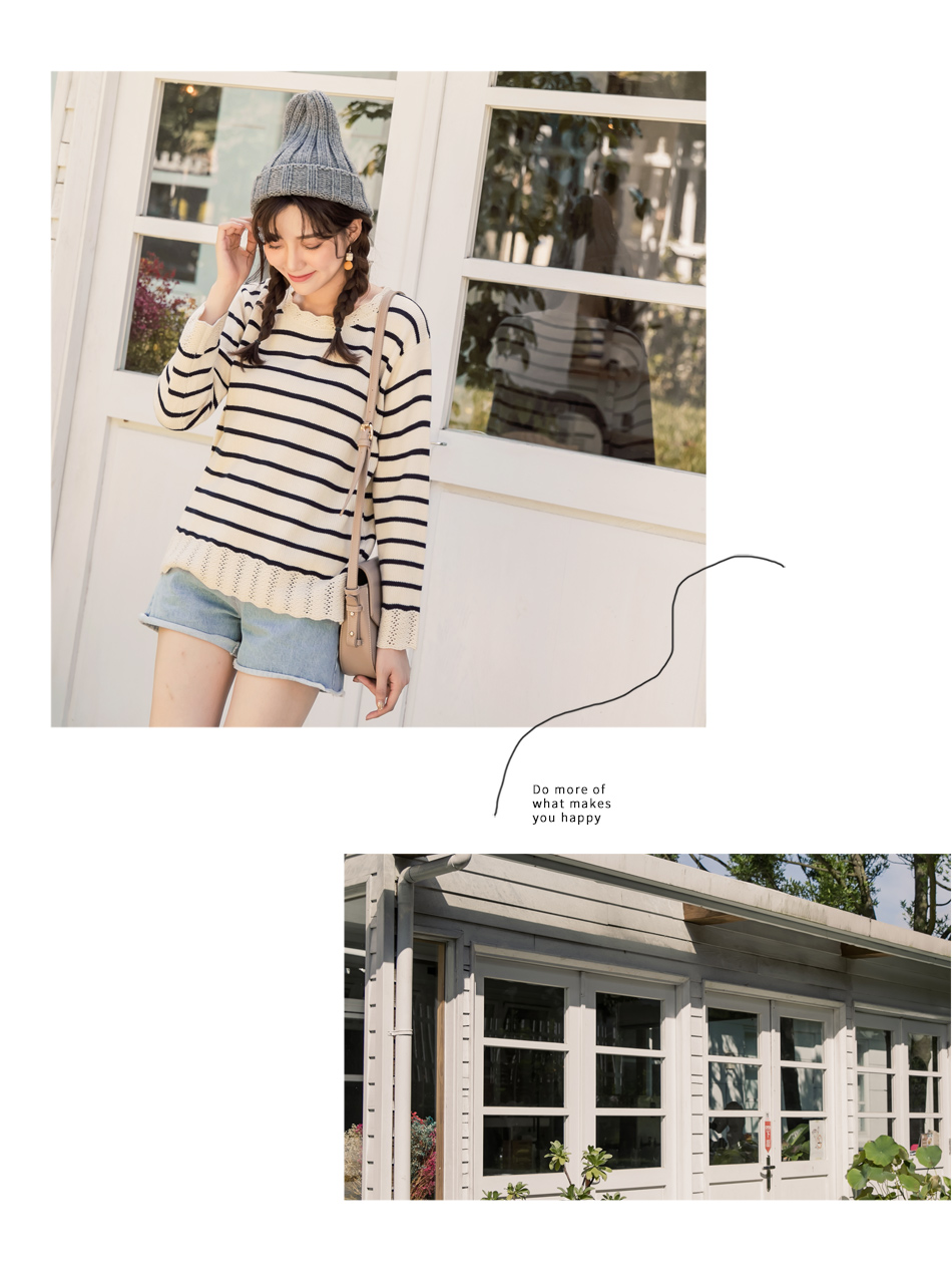 但都沒有讓我滿意的,因為看到的不是價格偏高不然就是品質不太讓我滿意,後來讓我在這裡發現了荷葉挑花設計條紋粗針織毛衣真是太開心了
