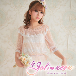 【Joli-neon】甜美宮廷感蕾絲花邊拼接兩件式上衣