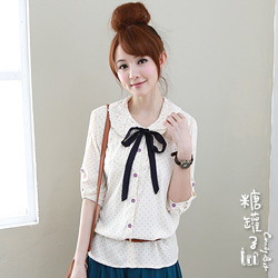 【糖罐子】層次領綁帶反釦袖點點襯衫,530線上影音城
