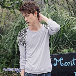 【潮‧界】拼接造型豹紋長袖上衣(共兩色)