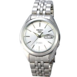 SEIKO 精工盾牌5號經典雅風自動機械錶(銀白) SEIKO 5號21石自動機芯 星期/日期顯示視窗 細膩直條紋面盤設計 透明錶背可直視機心運作