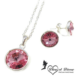 【Dieu et Deesse】施華裸鑽純銀項鍊耳環套組 (粉紅)