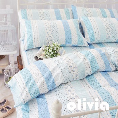 OLIVIA 《 維多利亞 藍 》特大雙人四件式舖棉兩用被床包組