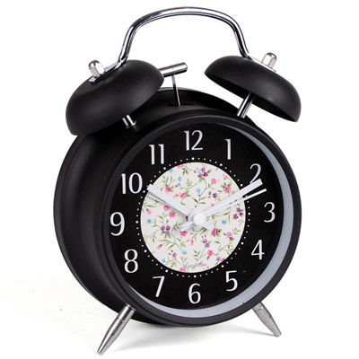 TaiCheng繽紛花漾懶人鬧鐘-超大鬧鈴聲+小夜燈+靜音秒針(黑身花樣)