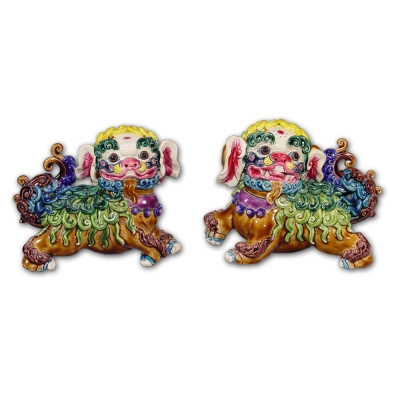 【鹿港窯】交趾陶開運擺飾-S獅對【小耍獅】
