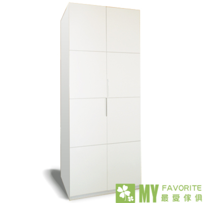 時尚純白2.7呎兩門衣櫃—鋼琴烤漆高質感系列