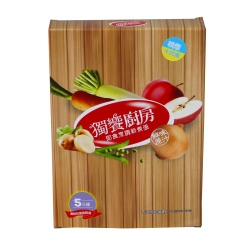 採用新鮮蔬果與牛骨經數小時燉煮之濃郁高湯,配合天然香辛料所熬製而成紅燒牛肉湯,再與澳洲牛腩肉、紅蘿蔔、白蘿蔔組合成美味又可口之產品,不僅可以當湯品更可以搭配成牛肉麵及牛肉燴飯等吃法,可以享受肉大塊、湯美味並具有營養便利之產品特色。