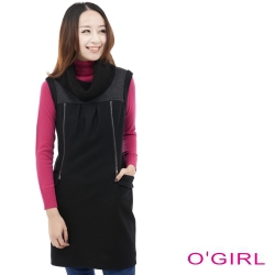 OGIRL圓垂領前拉鍊裝飾背心洋裝-黑