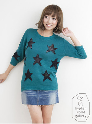 momo,momo購物台,momo購物網>【☆E hyphen☆】縷空星星圖騰質感針織上衣-綠色(20133CA2030144106) ★★★