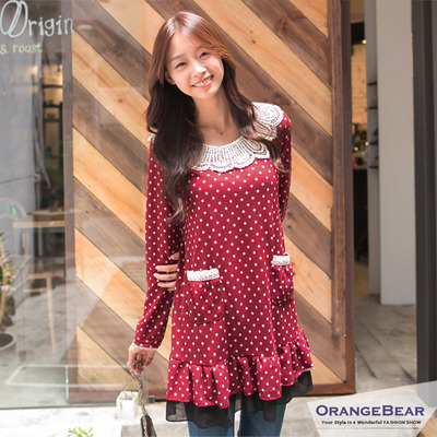 0109新品 甜心舞曲~甜美布蕾絲圓點點連身洋裝.3色商品訊息簡述: