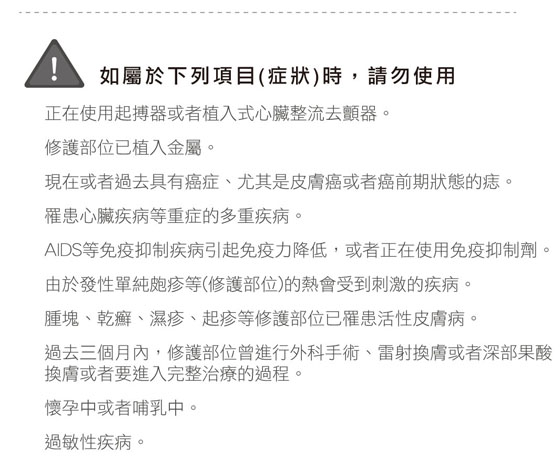 ●不可於同一部位停留過久,避免造成肌膚不適