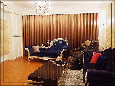營造皇室巴洛克風格透過似有絲綢及絨布光澤的多層次遮光窗簾布再配合上面印有貴族家徽圖騰的樣式立即點出華麗風格